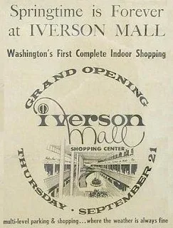 A newspaper advert announcing the grand opening of IVERSON MALL, which was held on September 21, 1967. Typical of the time is the forever springtime reference.