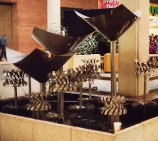 The shopping concourse at LONG RIDGE was decorated by several works of art. Here we see the Baschet Brothers "Sculpture Number 1," which was a fixture of the mall's North -or McCurdy's- Court.