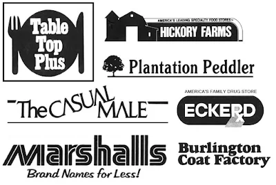 In this logo montage are trademarks of some of the thirty-six stores that operated in OUTLET SQUARE. The major players were Burlington Coat Factory, Marshalls, Winn-Dixie and Eckerd Drugs.