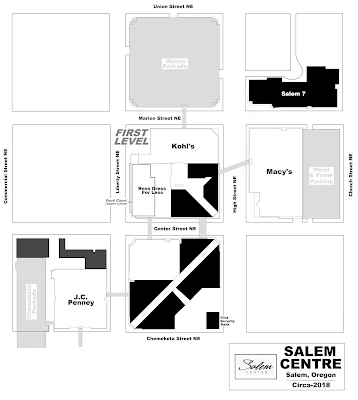 In 2018, the mall spans six city blocks and covers around 650,000 leasable square feet. During the 2010s renovation, Level 1 of the north block was gutted, with a Ross Dress For Less installed. Nordstrom closed their south block store in April 2018. Gazing into a retail crystal ball, we see that J.C. Penney will be shuttered in October 2020, with Macy's pulling their proverbial plug in March 2025.