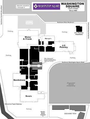 A major renovation was performed at WASHINGTON SQUARE between 1993 and 1995. Nordstrom relocated to a new store. Its original location became inline retail spaces and the 10-bay Summit Food Collection. By this time, an outparcel strip center -SQUARE TOO- had also been built southwest of the mall.