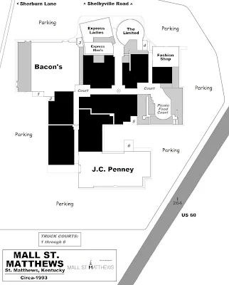 The Derby City's original enclosed shopping complex had been joined by five roofed retail centers by 1978. Its original moniker, THE MALL, became redundant and was changed to THE MALL IN ST. MATTHEWS in 1984. This morphed into MALL ST. MATTHEWS (sans the "In") in 1989.